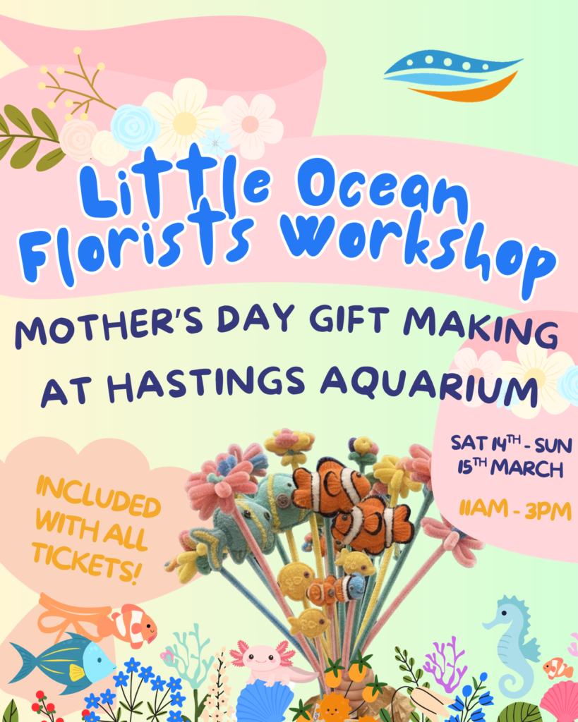 Join us at Hastings Aquarium for our Little Ocean Florists Workshop! We’re helping little ones craft their own adorable aquatic mini-bouquets and special pop-out cards to take home. It’s the perfect way to make Mum feel extra special and we’ll provide all the supplies!